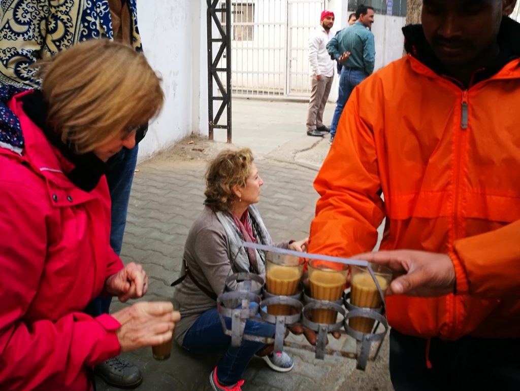 他国からの旅行者との交流も、こうした現地ツアーの魅力です。インドの町並み同様、たくさんの出会いを楽しんでくささいね!