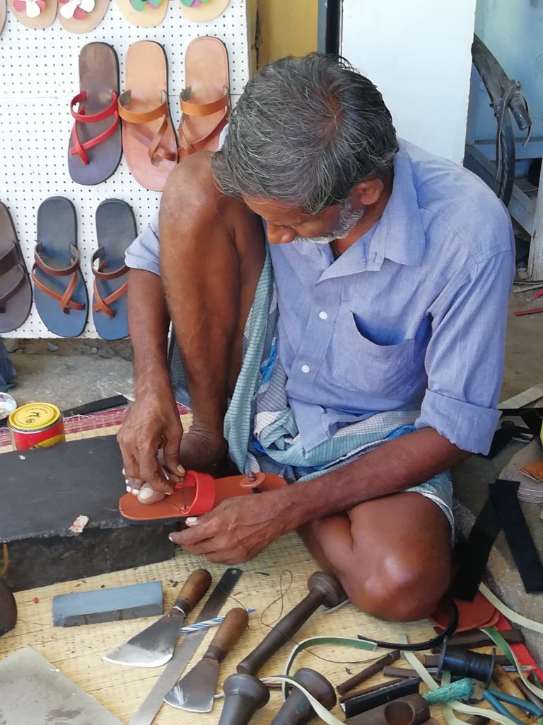 ちなみに私は、きちんとした良い仕事をする職人さんから物を買うときは、値切りません。インドでもどの国でも、腕と経験に敬意を表して、言い値で買うか、諦めるかのどちらかにしています。ですがこの日は帰国直前で現金が足りず、2足買って、ちょっとだけオマケしてもらいました。