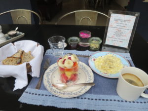 パンは、近所のパン屋さんに注文した焼きたてを冷凍保存しているそう。3日ごとにフレッシュなパンが届き、サーブする直前にパリッと焼かれて出てきます。この食感と味だけで、インドにいることを忘れそうなほど!フレンチプレスのコーヒーも、深入りローストの芳醇な香りで朝から元気が出ます。ただ、朝からしっかり食べたい人には量が少ないかも。