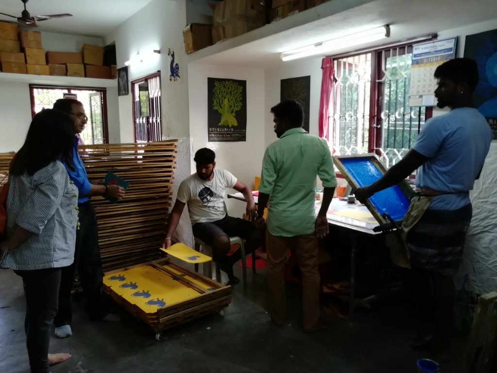 絵本は全国のMUJI BOOKSで販売されています。2019年4月に銀座にオープンした旗艦店のMUJI BOOKSでは、10月のイベントに、遙々インドから工房の責任者が来日。シルクスクリーンのワークショップを行い、多くの来客で賑わいました。